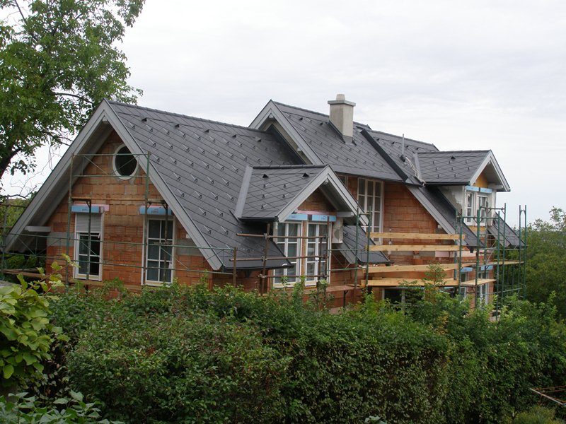 Tetőépítés, tetőfedés cseréppel, palával, homlokzat fedés palával |