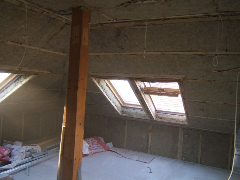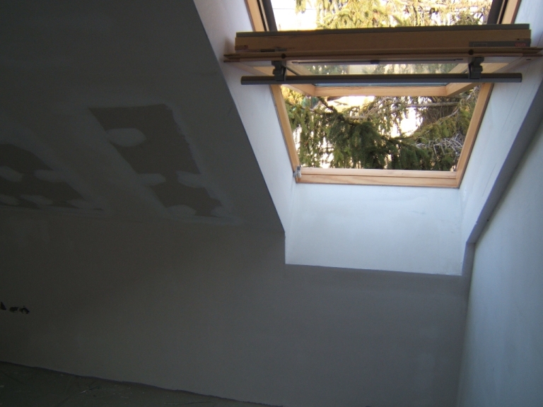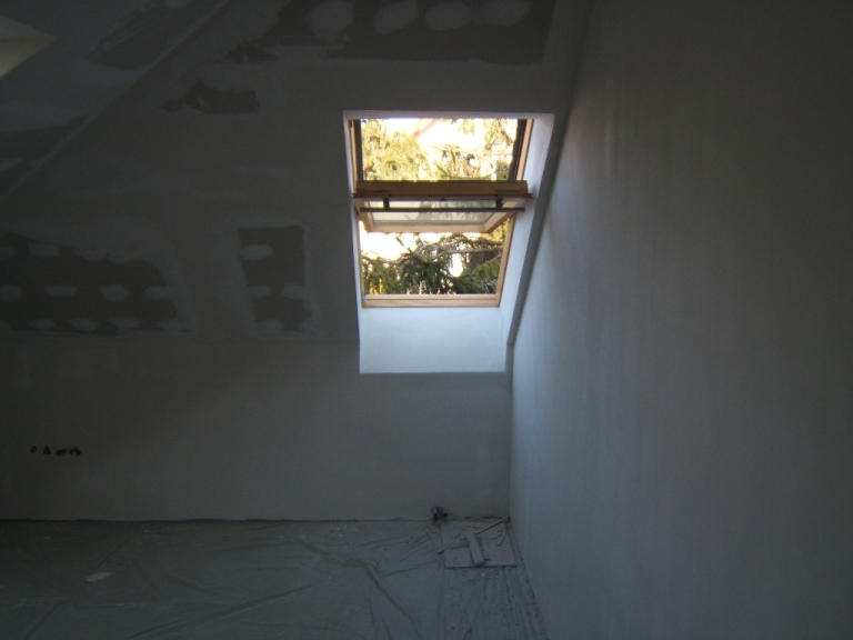 tetőtér, tetősík ablak beépítés, gipszkartonozás |
